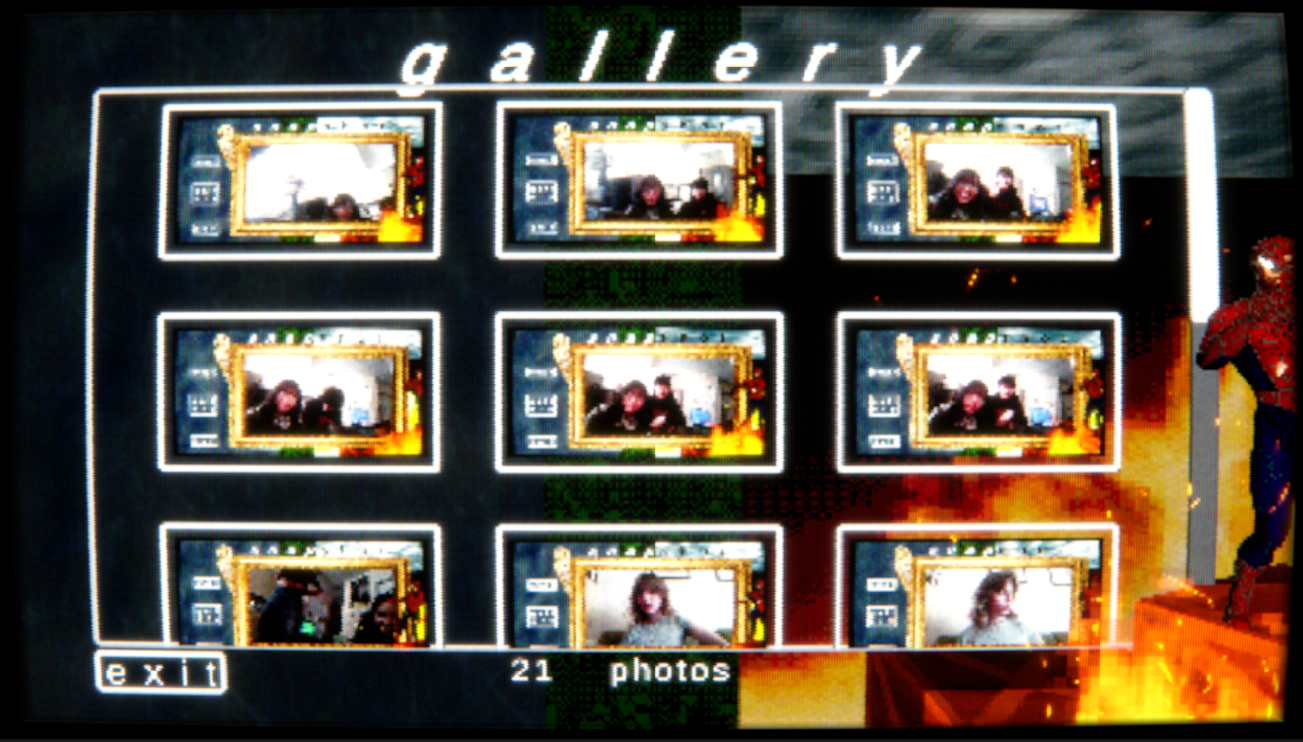 take pics, delete pics, enjoy the crt retro shaders, and dance to baby one more time by britney spears.